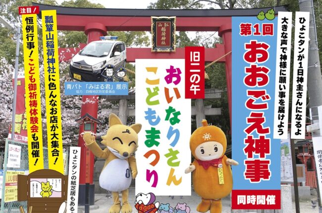 瓢箪山稲荷神社は、大阪府東大阪市瓢簞山町(旧四条村字大塚)に鎮座し、六世紀に山麓に群集して築造された山畑古墳群のうち、最も西に位置し、最大の古墳「瓢箪山古墳」(双円墳)の西斜面に、西面する社殿が建てられている。稲荷神すなわち「保食大神」(うけもちのおおかみ)をご祭神として祀り、辻占の総本社として古くから親しまれています。